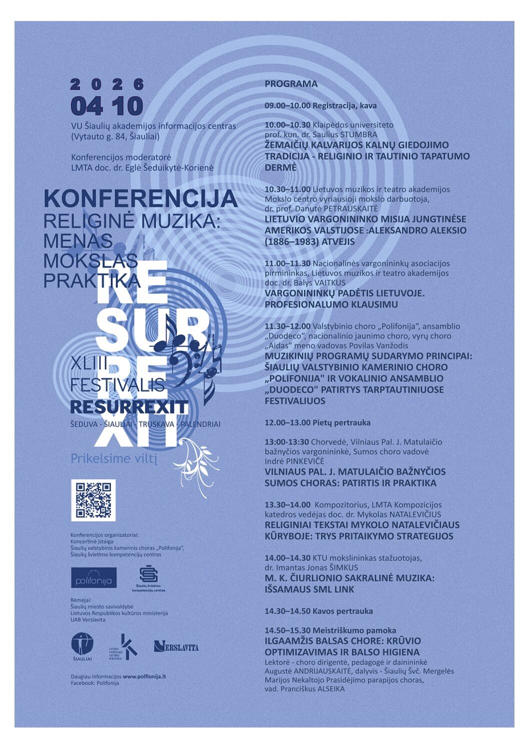 Maloniai kviečiame 2026 m. balandžio 10 d. 10.00–15.30 val. į tradicinę XLIII festivalio „Resurrexit“ konferenciją „Religinė muzika: menas, mokslas, praktika“, kuri vyks VU Šiaulių akademijos...