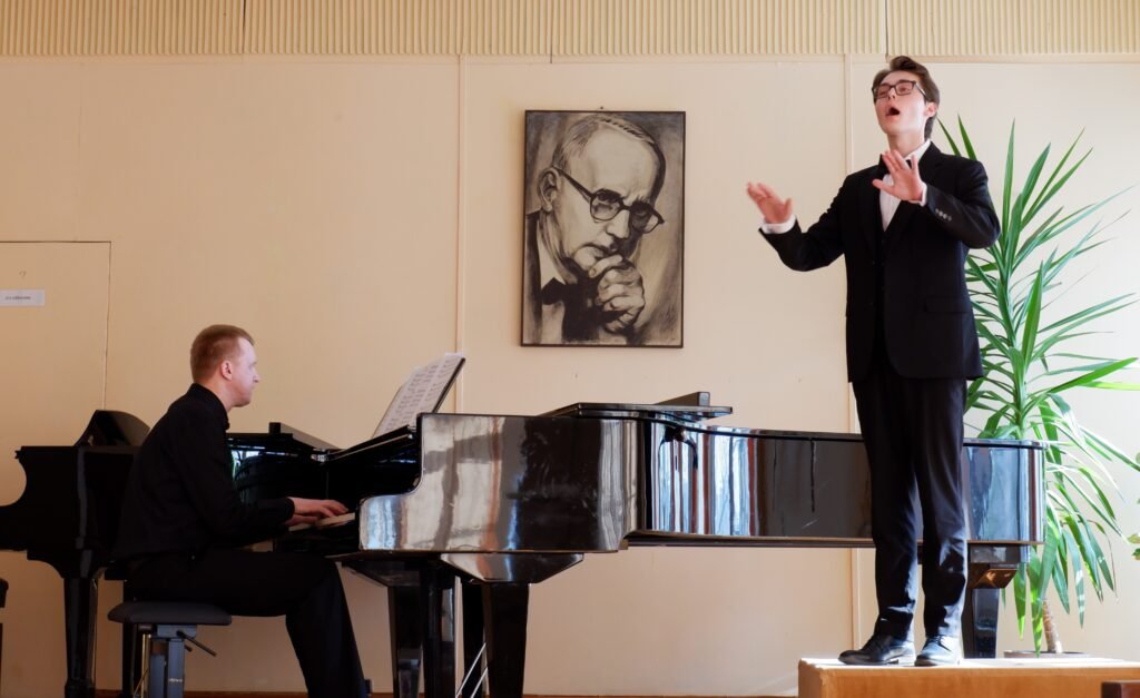Konkurso dalyviai buvo suskirstyti į dvi grupes pagal mokymosi trukmę. Pirmasis turas vyko mokykloje – čia visi dirigavo pasirinktus ir privalomus kūrinius, akomponuojant koncertmeisteriams. Jaunesniųjų grupė dirbo su Stasio Šimkaus harmonizuota liaudies daina „Per tamsią naktelę“, o vyresnieji – su Ryčio Svilainio kūriniu „Augo kieme uoselis“.