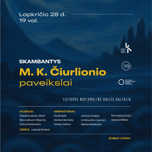 Lapkričio 28 dieną, 19 val., Lietuvos nacionalinėje dailės galerijoje, Valstybinio choro „Vilnius“ inicijuotas projektas – ,,Skambantys M. K. Čiurlionio paveikslai” kviečia išgirsti...
